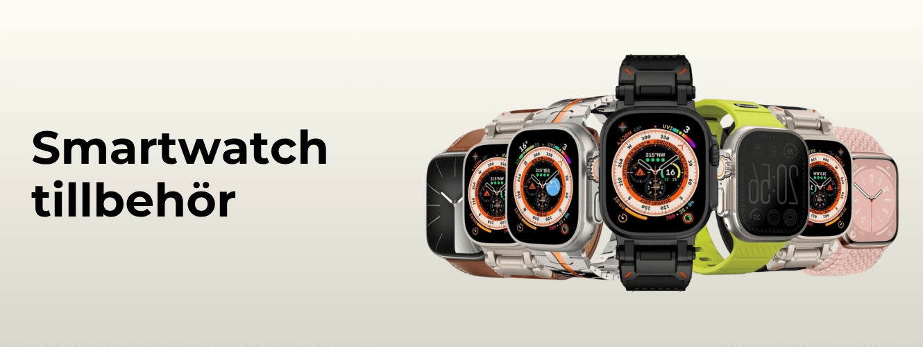 Vi erbjuder även ett brett utbud av tillbehör för surfplattor och smartklockor, såsom Apple iPad och Samsung Galaxy Tab. Våra tillbehör inkluderar skyddsfodral, tangentbord och andra smarta tillbehör som förbättrar din surfplattas användning. För dig med smartklockor som Apple Watch eller Samsung Galaxy Watch har vi ett stort utbud av armband och skal som både skyddar och ger din klocka ett personligt uttryck. Upptäck våra Apple iPad tillbehör och Samsung Galaxy Watch tillbehör.