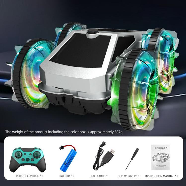 2.4G Amfibisk Stuntbil Leksaks RC Fordon Dubbelsidig Körning Vattenyta Drifting Terrängrullning Geststyrd Leksak, Enkel Fjärrkontroll för Barn (Ålder 3+) CV-B904 - Silver/Svart
