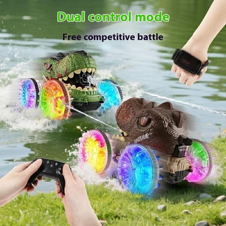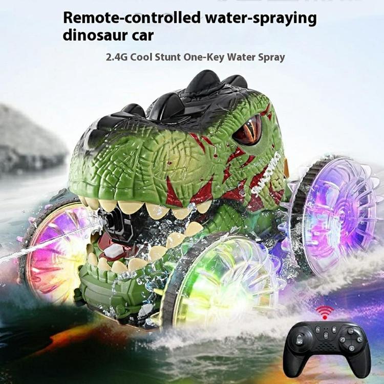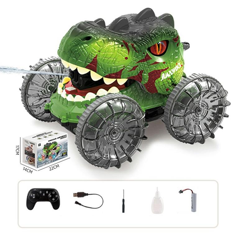 2.4G RC Amfibisk Dinosauriebil 360 Graders Rotation 4WD Stuntfordon med Vattenspray Crawlerleksak för Barn (Ålder 3+) YL-125 - Grön
