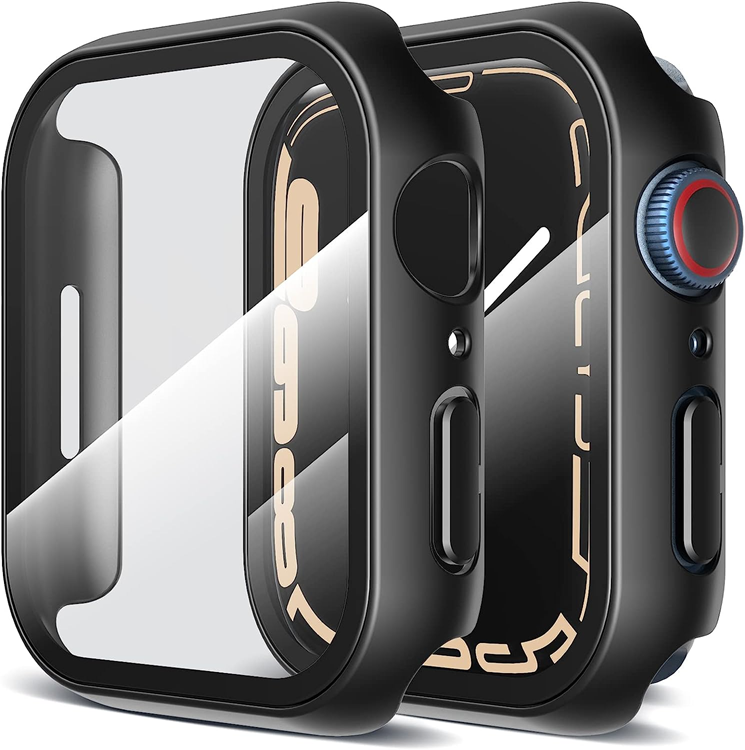 2-i-1 Skal med Hädat glas Apple Watch 7/8 (38mm) - Svart
