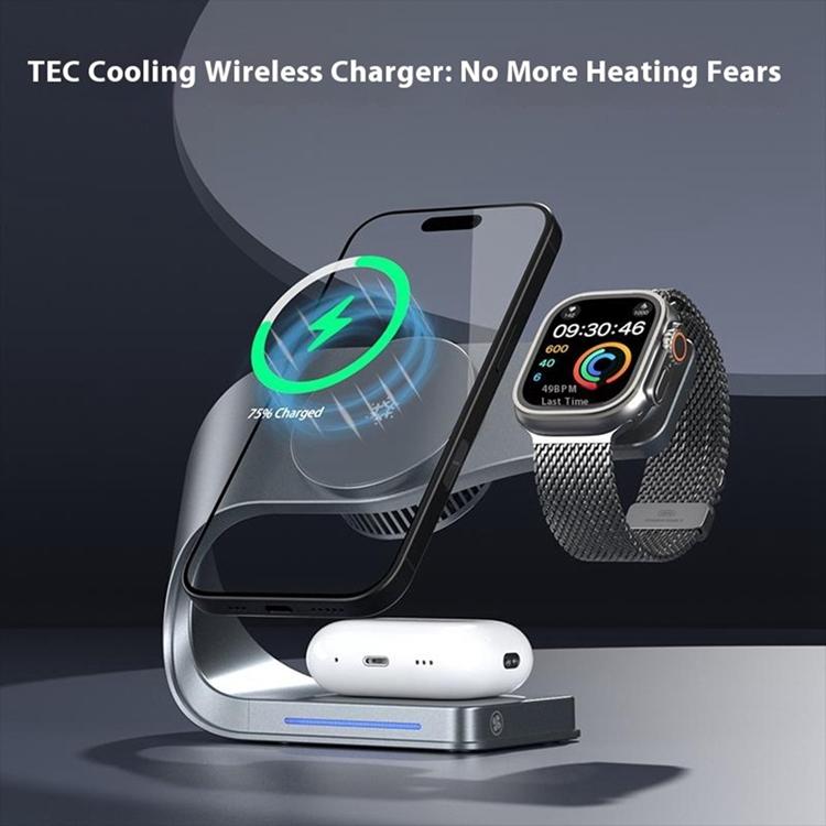 3-in-1 Qi2 Trådlös Laddare Magsafe iPhone, Apple Watch, AirPods TEC Semiconductor kylfläktladdningsstation LFX-178X - Tarnish