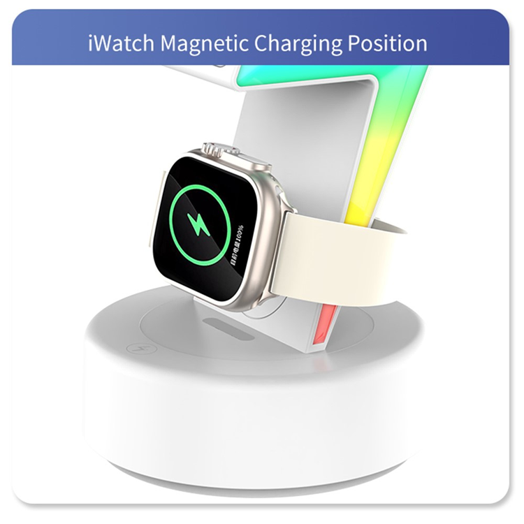 3in1 MagSafe Trådlös Laddare iPhone, Apple Watch, Airpods 15W med RGB-Färgade Lampor - MY002 - Vit