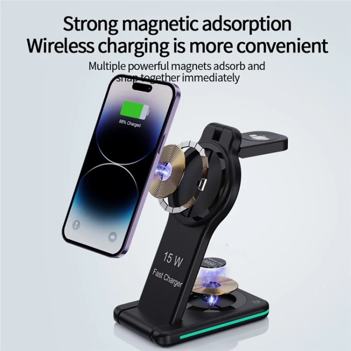 4in1 Vikbar MagSafe Trådlös Laddare iPhone, Apple Watch, Airpods med Nattlampa H60 - Svart