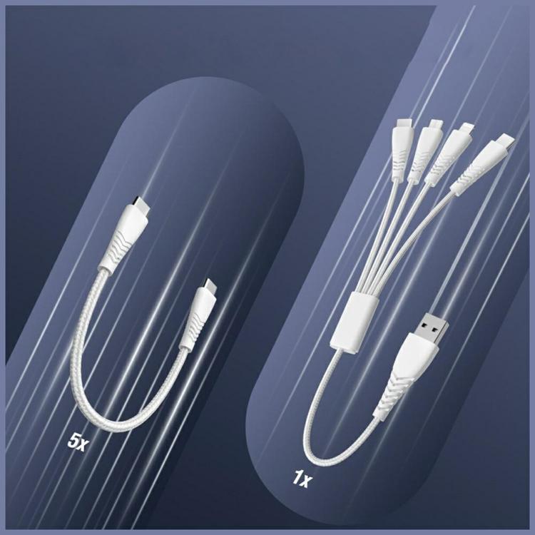 Kabelset ingår – 5x USB-C-kablar + 1x 4-i-1 kabel (USB-C, Lightning, Micro-USB)
