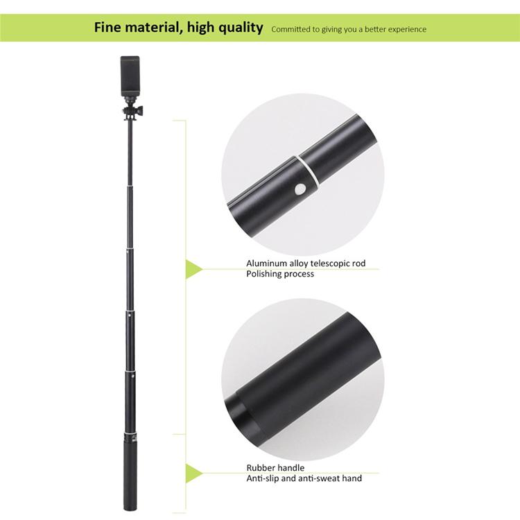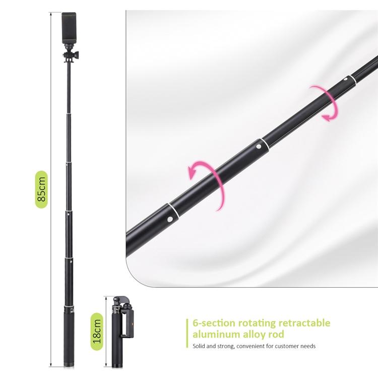 H611 är en mångsidig selfiepinne designad för både smartphones och GoPro-kameror. Den kan enkelt förlängas från 20 till 80 cm och är tillverkad i slitstark aluminium med ett greppvänligt silikonhandtag. Med den medföljande Bluetooth-fjärrkontrollen kan du ta bilder och spela in video helt handsfree – perfekt för vloggar, gruppbilder, resor, konserter och alla stunder där du vill fånga mer än vad armen räcker till.