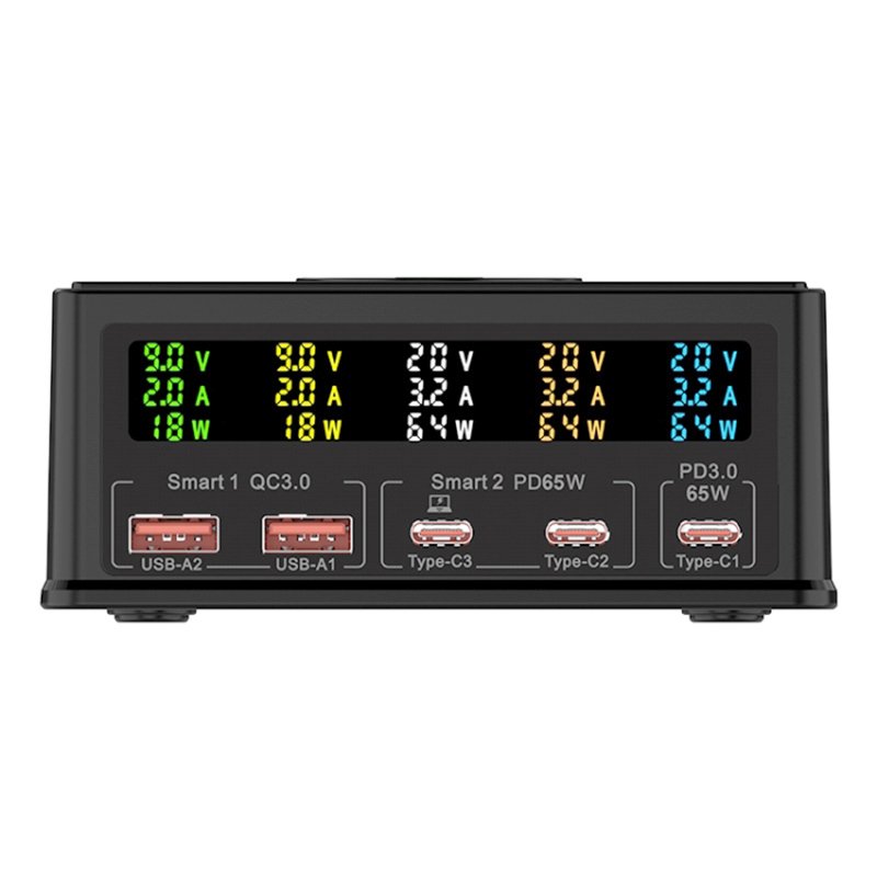 - Inkluderar 2 x QC3.0 USB-portar och 3 x PD Type-C-portar