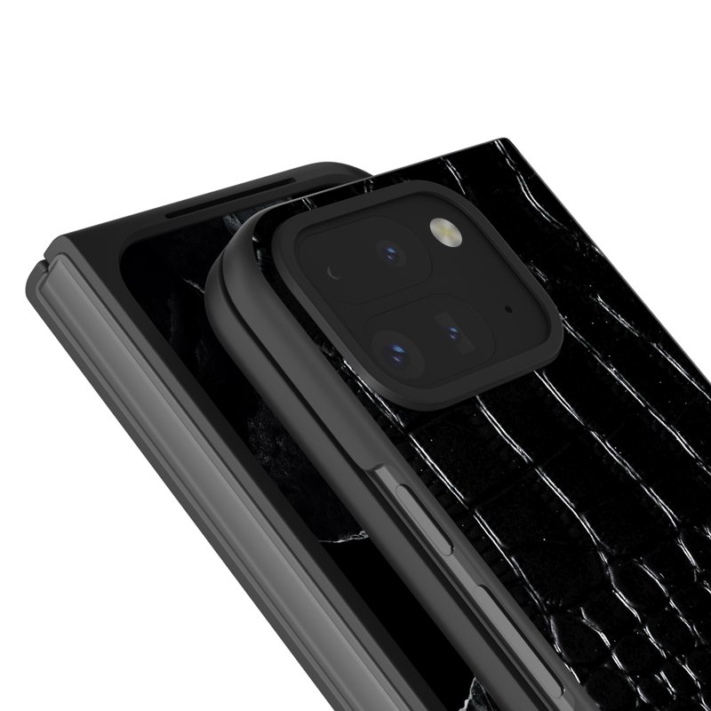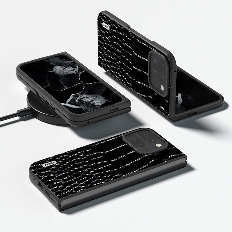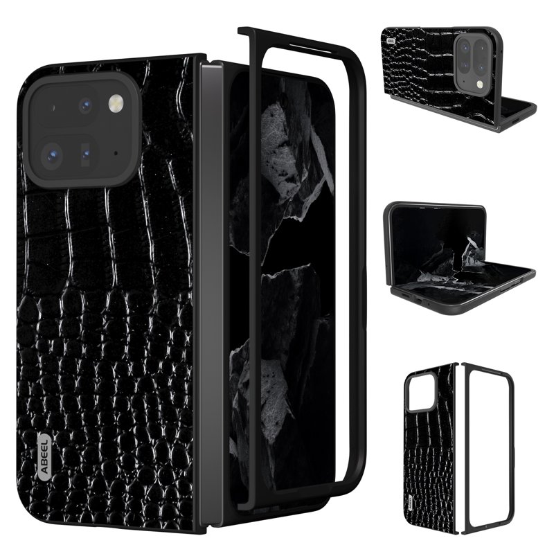 ABEEL Google Pixel 9 Pro Mobilskal Äkta Läder Krokodiltextur Svart