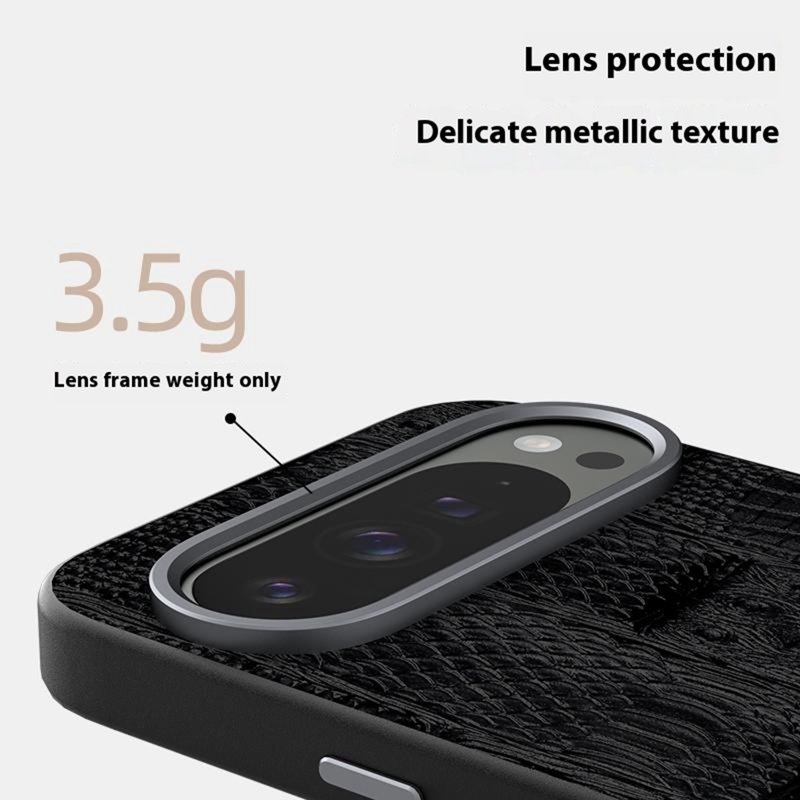 - Premium materialkombination: Tillverkad av PC-skal, TPU-kant, aluminiumlegering och äkta nötköttsläder. Lyxigt utseende och hållbar konstruktion.