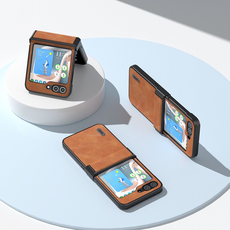 - Flexibel design: Flip-designen är både robust och flexibel, utan att påverka telefonens funktioner.