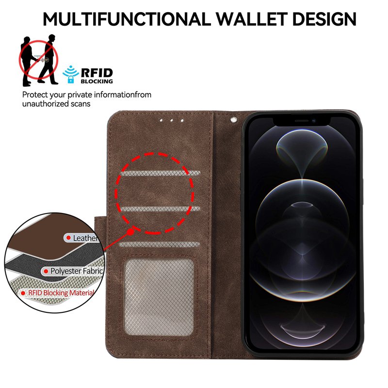 Upptäck det perfekta skyddet för din telefon med vår premium PU-läder och TPU-fodral. Det erbjuder både komfort och hållbarhet. Med smarta funktioner som RFID-blockering och praktisk plånboksdesign, är detta fodral både stiligt och funktionellt. Skydda din telefon och dina kort med stil.