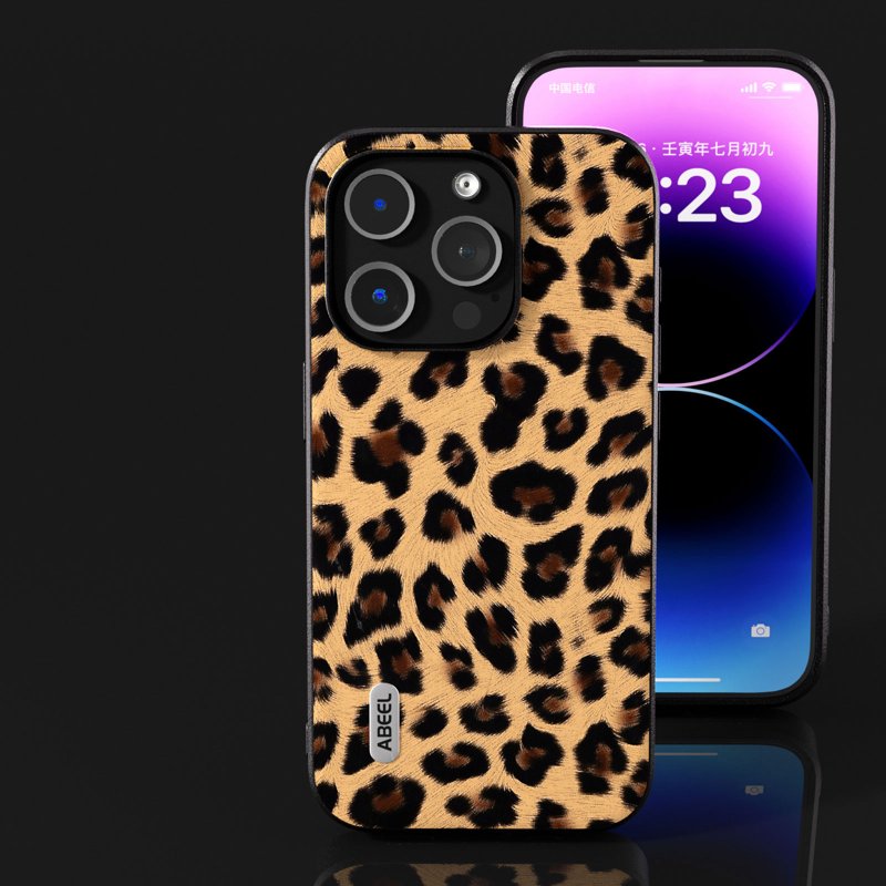 ABEEL iPhone 13 Pro Max Skal PU Läder Leopard Champagne Gold