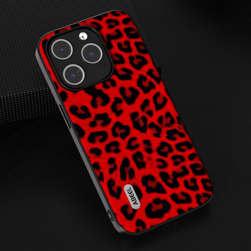 ABEEL iPhone 13 Pro Max Skal PU Läder Leopard Röd