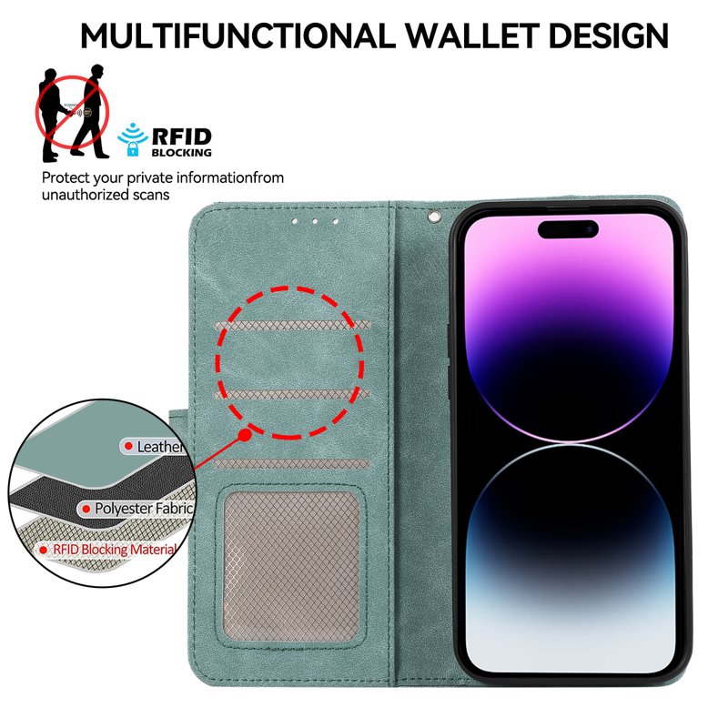 Denna plånboksfodral kombinerar stil och funktionalitet. Tillverkat av högkvalitativt PU-läder och TPU, erbjuder det både komfort och hållbarhet. Med smarta fack för kort och kontanter, samt RFID-skydd, är det den perfekta lösningen för att skydda din telefon och dina värdesaker.