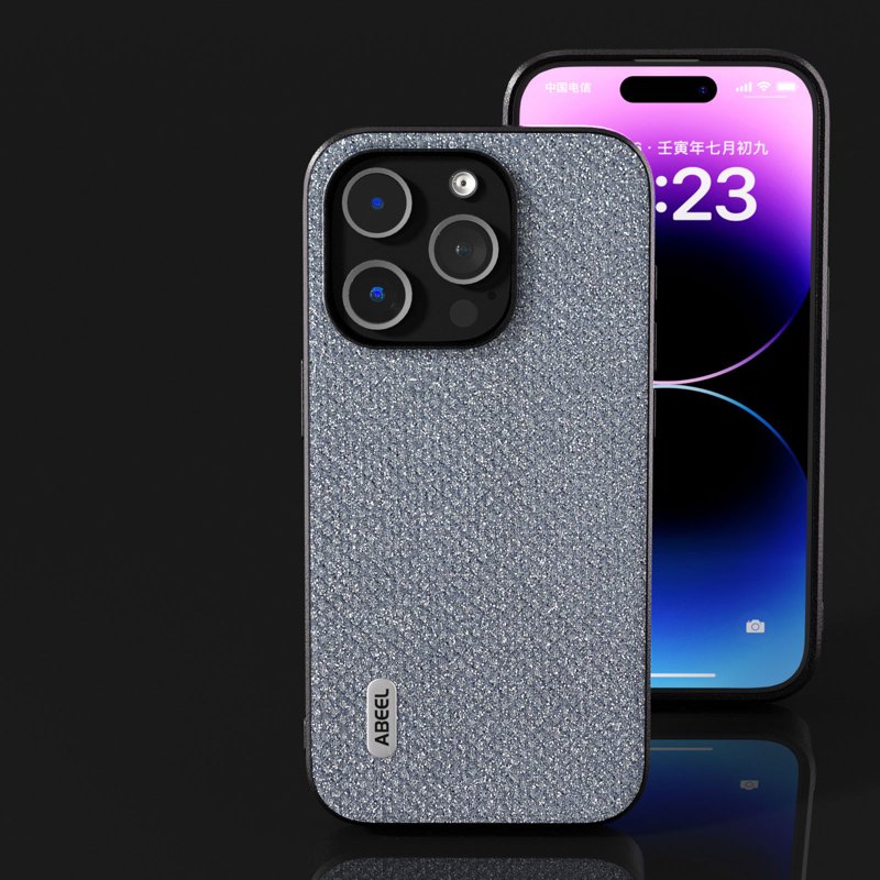 ABEEL iPhone 14 Pro Skal Rhinestone Textur PU Läder Grå