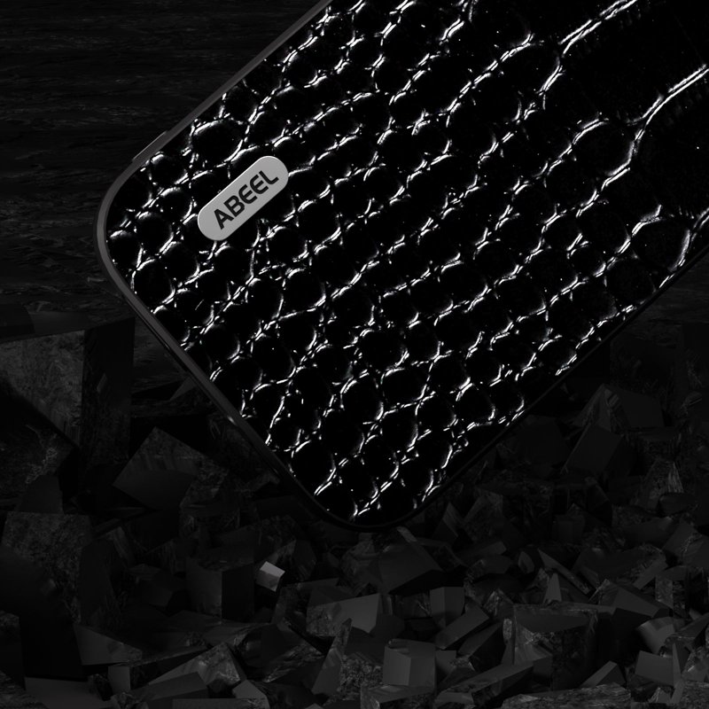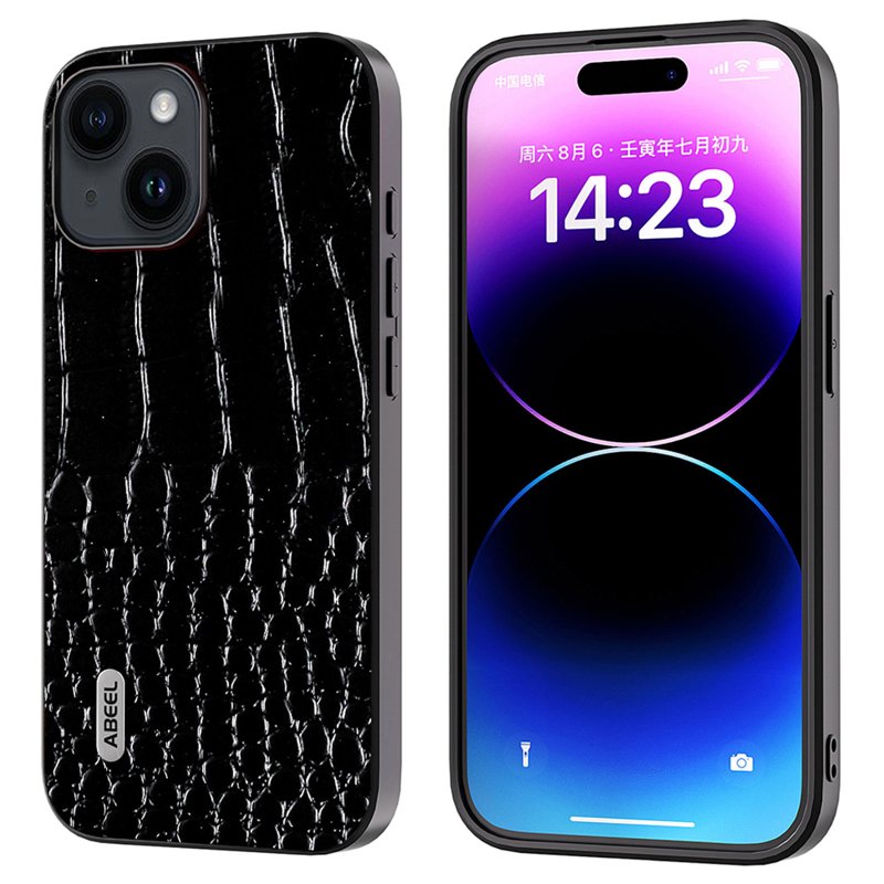 ABEEL Mobilskal till iPhone 15 Plus Äkta Läder Krokodiltextur Svart
