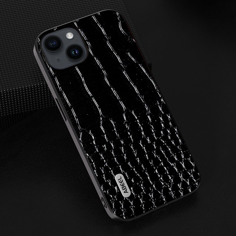 Handla denna produkt ABEEL Mobilskal till iPhone 15 Plus Äkta Läder Krokodiltextur Svart
