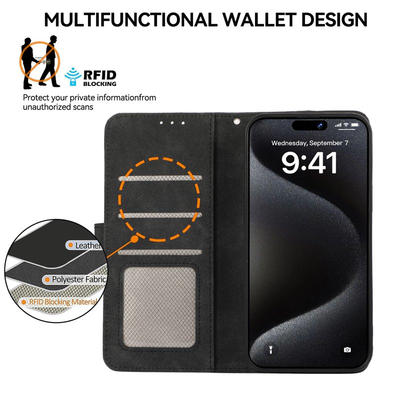 Upptäck den perfekta kombinationen av stil och funktionalitet med vår premium PU-läder och TPU plånboksfodral. Det erbjuder både komfort och hållbarhet. Med smarta fack för kort och kontanter skyddar det även din personliga information med avancerad RFID-blockering.
