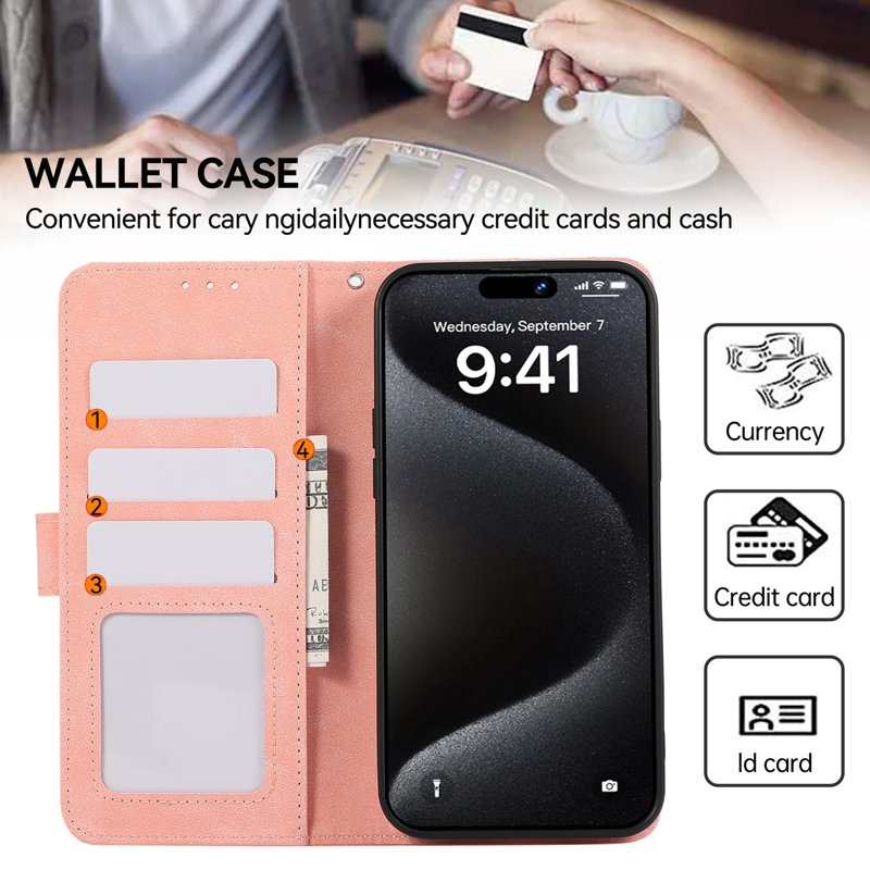 Denna plånboksfodral kombinerar stil och funktionalitet. Tillverkat av högkvalitativt PU-läder och TPU ger det både komfort och hållbarhet. Med smarta fack för kort och kontanter är det en praktisk lösning för att skydda din telefon och dina värdesaker.