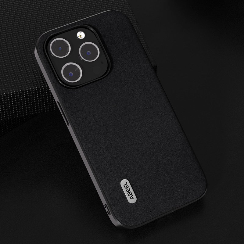 ABEEL iPhone 15 Pro Max Skal Äkta Läder PC+TPU Nappa Svart
