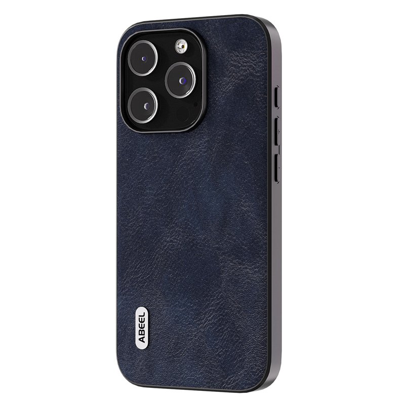 ABEEL iPhone 15 Pro Max Skal PU Läder Blå Cowhide Textur