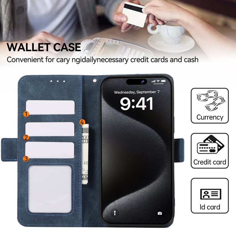 Denna plånboksfodral kombinerar funktionalitet och skydd. Tillverkat av PU-läder och TPU, erbjuder det ett komplett skydd mot slitage och repor. Med smarta fack för kort och kontanter är det perfekt för den moderna användaren.