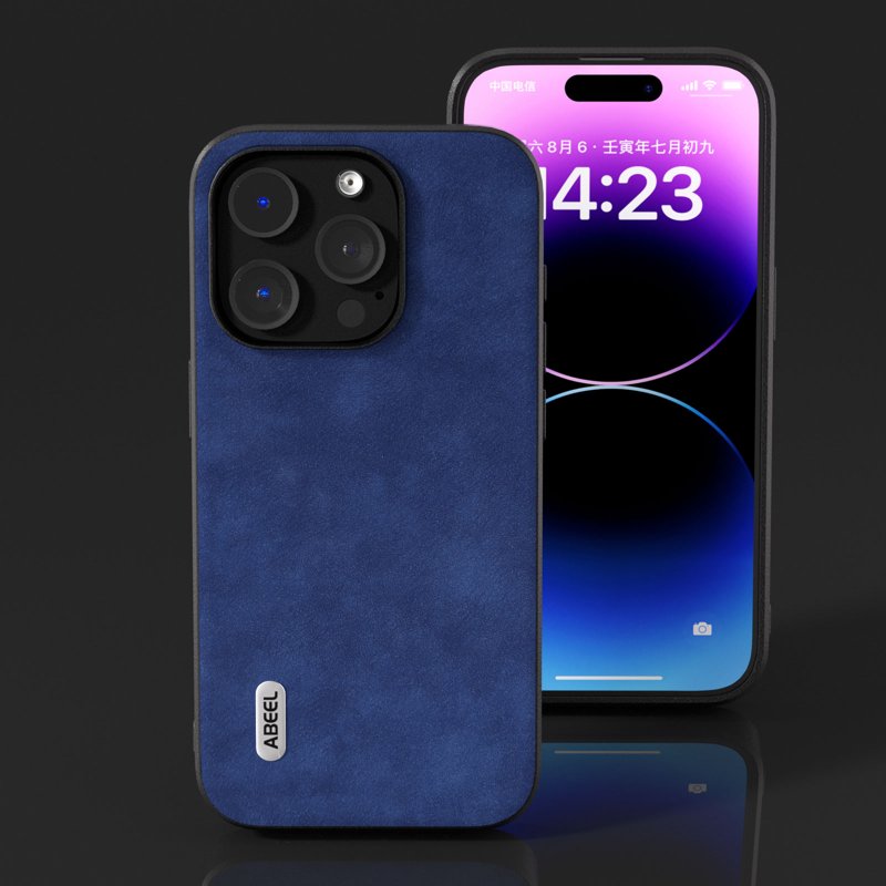 ABEEL iPhone 15 Pro Skal Texturerad PU Läder Blå