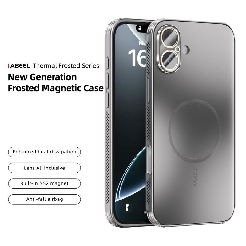 ABEEL iPhone 16 Magnetiskt Fodral TPU PC Kyl Matte Titanium Grey