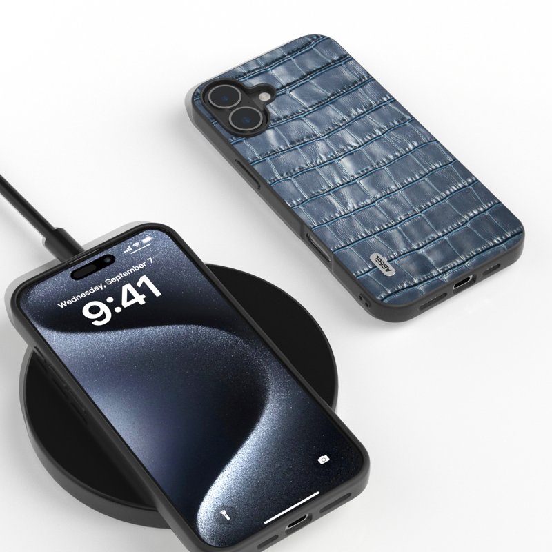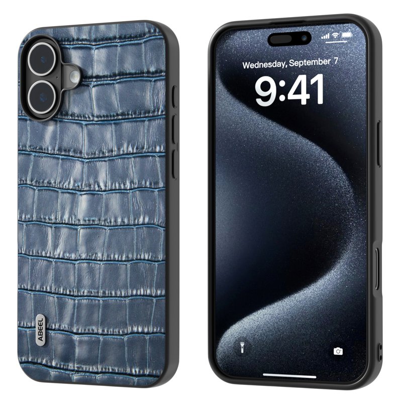 ABEEL iPhone 16 Plus Skal Äkta Läder + PC + TPU Stöttålig Blå