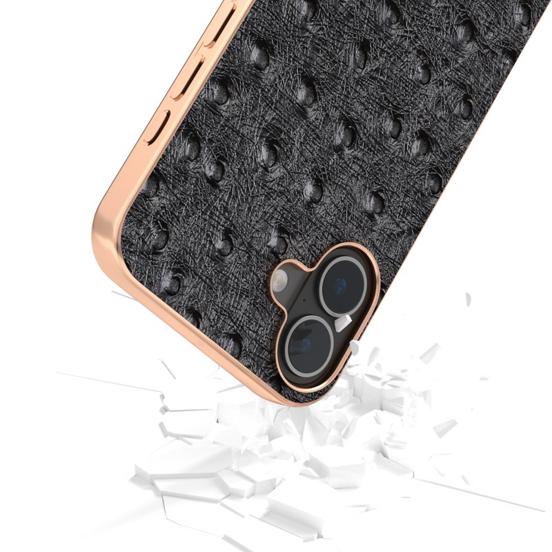 ABEEL iPhone 16 Plus Skal Electropläterad Ostrich Läder - Svart