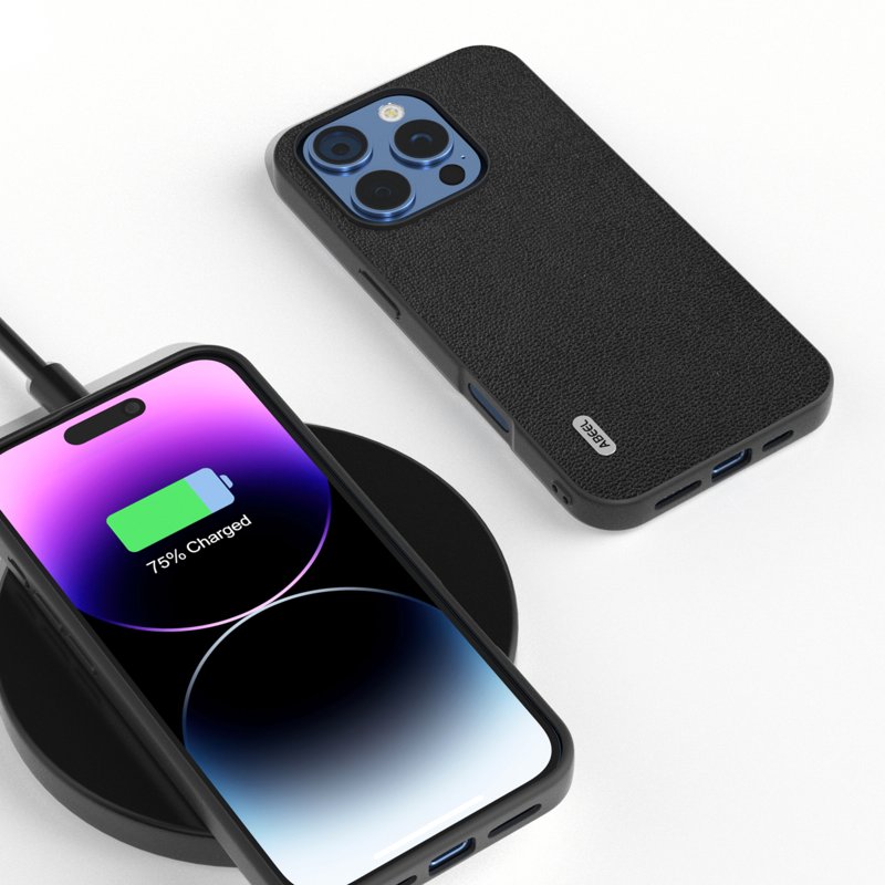 ABEEL iPhone 16 Pro Fodral Äkta Läder PC+TPU - Svart