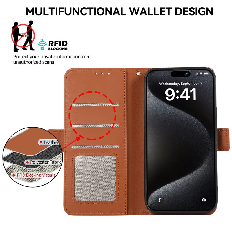 Denna fodral är tillverkat av högkvalitativt PU-läder och TPU-material, vilket ger långvarigt skydd för din enhet. Med RFID-blockering och en praktisk plånboksdesign är detta fodral både funktionellt och säkert. Njut av bekvämligheten av att ha allt du behöver på ett ställe.