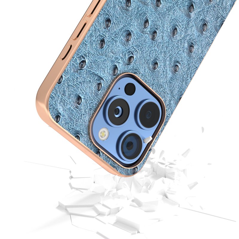 Detta mobilskal är tillverkat av högkvalitativt äkta nötköttsläder och TPU-material. Det erbjuder överlägsen hållbarhet och en unik strutsstruktur som ger din enhet en stilren och lyxig look. Med 360° skydd och noggrant utformade utskärningar är detta skal både funktionellt och elegant.
