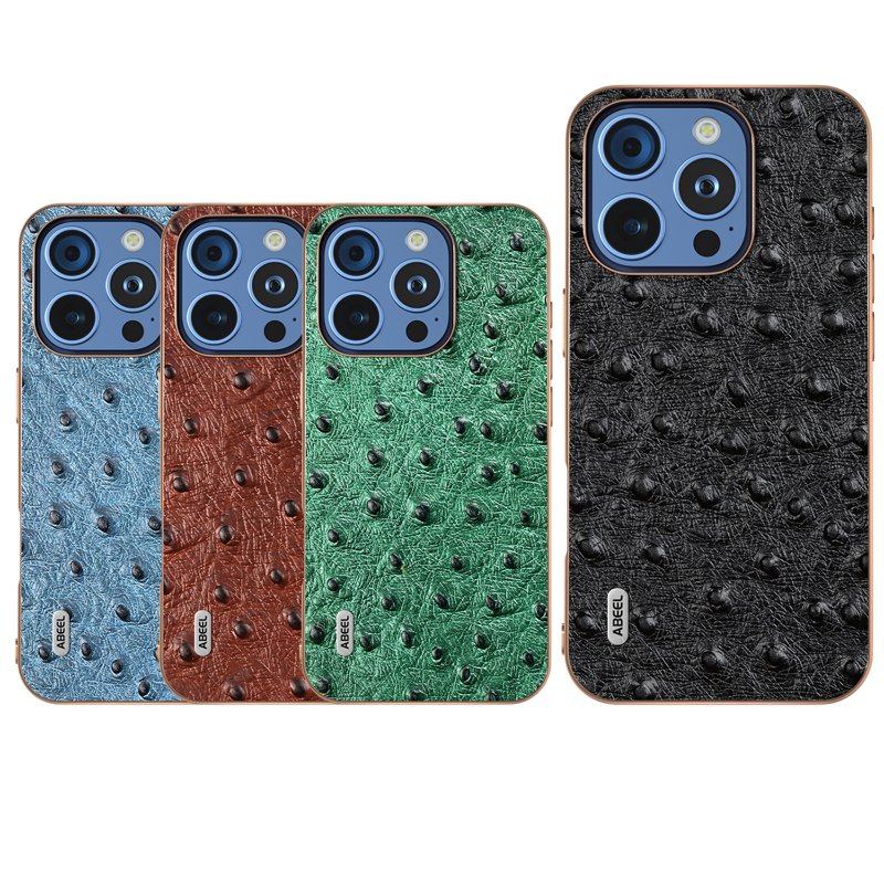 Detta mobilskal är tillverkat av högkvalitativt äkta nötköttsläder och TPU-material. Det erbjuder en överlägsen hållbarhet och skydd för din telefon. Med en unik strutsstruktur och elektropläterade kanter får din enhet en stilren och lyxig look. Perfekt passform och funktionalitet gör detta skal till ett utmärkt val.