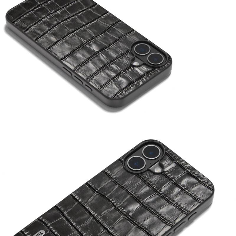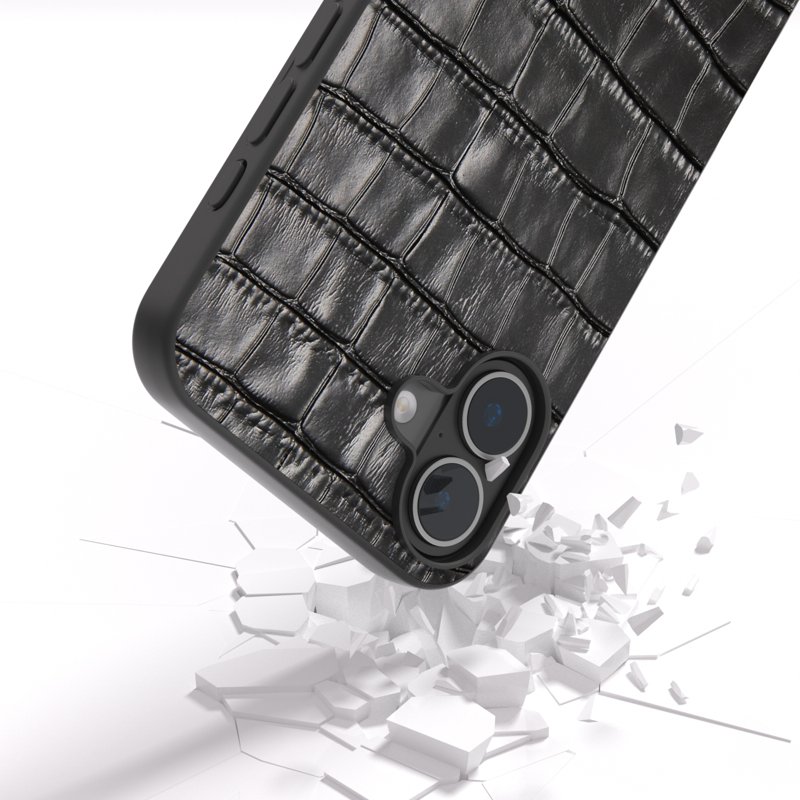 Detta telefonfodral kombinerar stil och funktionalitet. Tillverkat av äkta nötläder och PC-material ger det ett lyxigt grepp och skyddar din telefon mot dagligt slitage. Med sin krokodiltextur utstrålar det elegans och hållbarhet, perfekt för den som vill sticka ut.