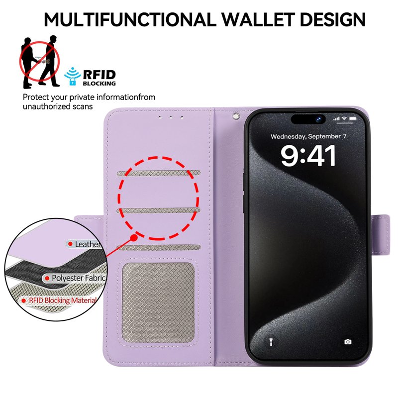 Denna fodral är tillverkat av högkvalitativt PU-läder och TPU-material, vilket ger långvarigt skydd för din enhet. Med smarta funktioner som RFID-skydd och en praktisk plånboksdesign, är detta fodral både funktionellt och stiligt. Håll dina viktigaste saker nära till hands.