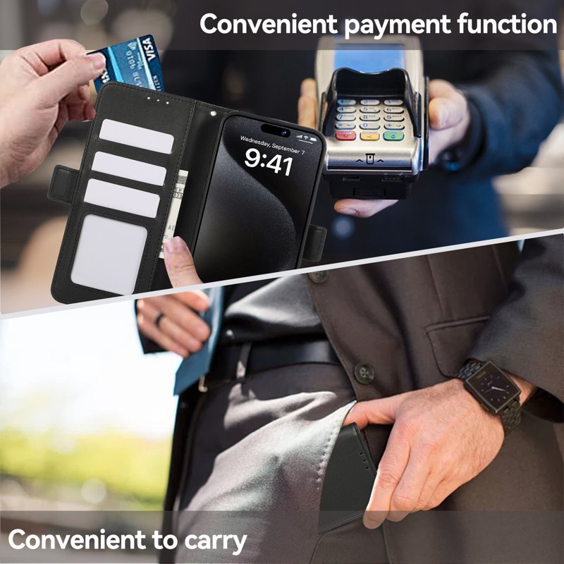 - Säker magnetisk stängning: Det vikbara fodralet har en stark magnetstängning som håller din telefon och kort på plats.