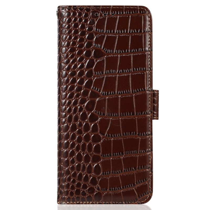 Skydda din Samsung Galaxy A35 5G med detta eleganta fodral i äkta nötköttsläder. Fodralet har en praktisk kortficka och RFID-blockering för att skydda dina kort. Den stiliga krokodiltexturen ger en lyxig känsla och ett bra grepp. Med detta fodral får du både funktion och stil i ett.