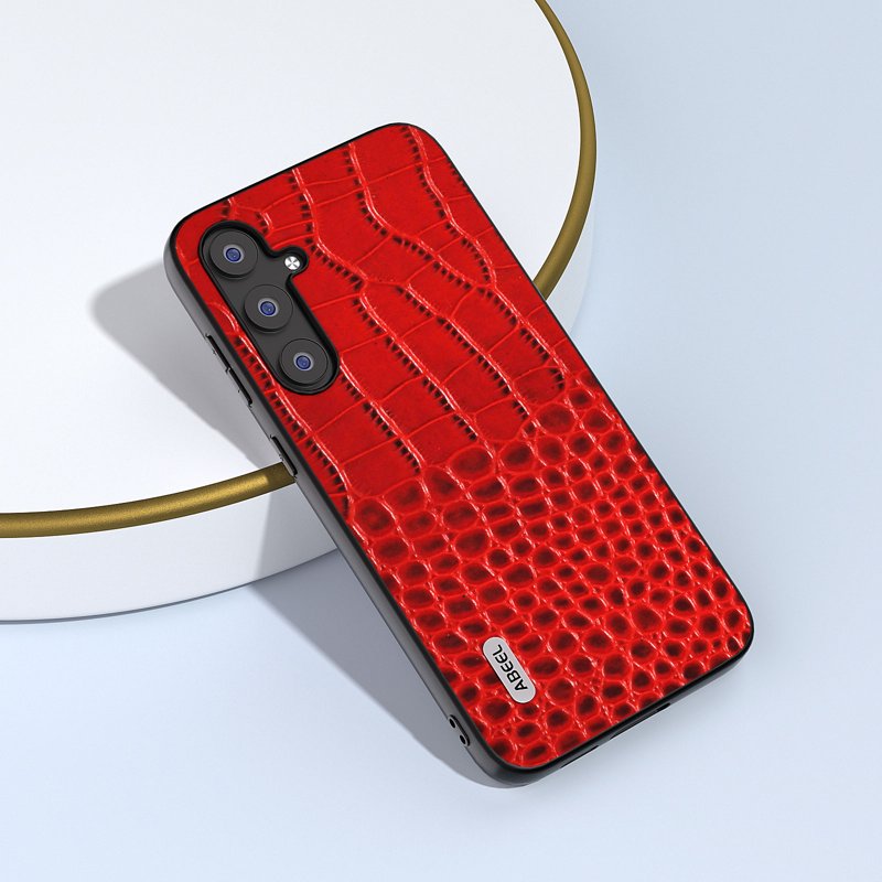 Denna mobilskal är tillverkat av äkta nötköttsläder och erbjuder en kombination av stil och hållbarhet. Med sin unika krokodilstruktur ser den både modern och elegant ut. Skalet skyddar din telefon mot repor och slitage, samtidigt som det ger enkel åtkomst till alla funktioner.
