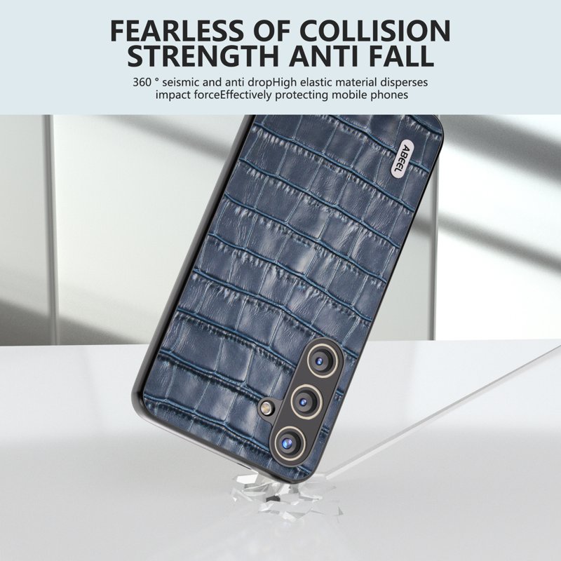 Detta mobilskal kombinerar stil och funktionalitet. Tillverkat av äkta nötläder och PC-material, erbjuder det en lyxig känsla samtidigt som det skyddar din telefon mot dagligt slitage. Med sin krokodiltextur ger det en unik look som gör att du sticker ut.