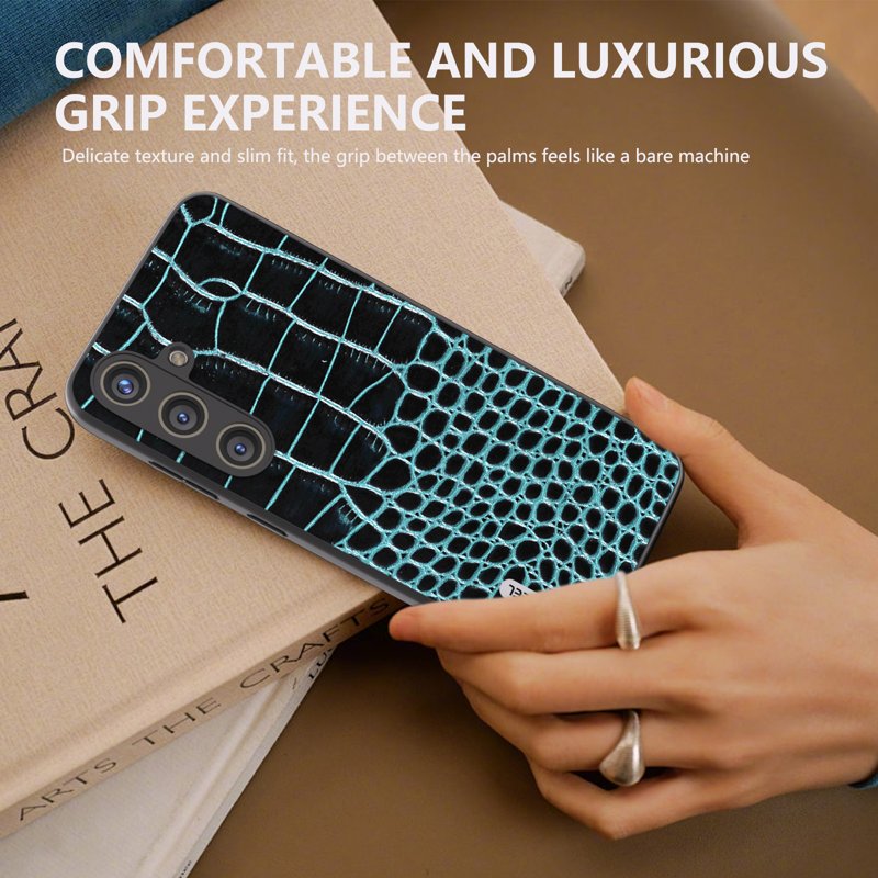Denna exklusiva mobilskal är tillverkat av äkta nötköttsläder och erbjuder både stil och hållbarhet. Med en unik krokodiltextur ser det inte bara bra ut utan skyddar också din telefon effektivt. Det är designat för att passa perfekt och ge ett bra grepp.