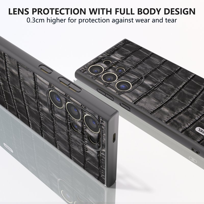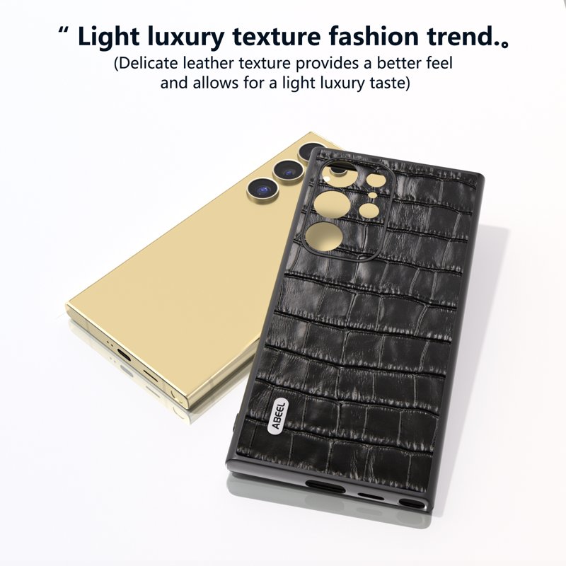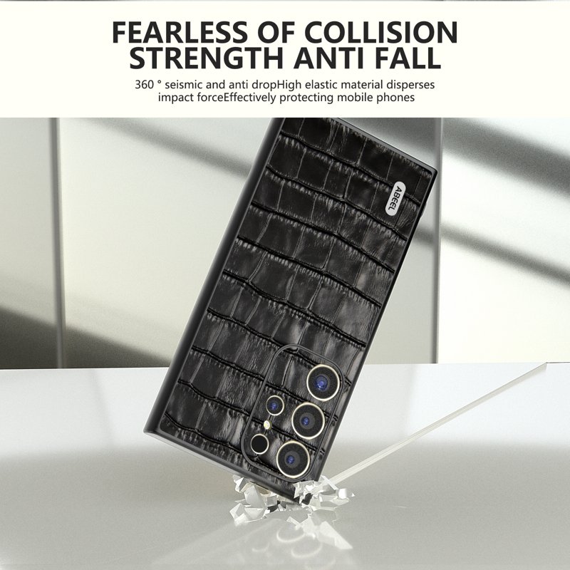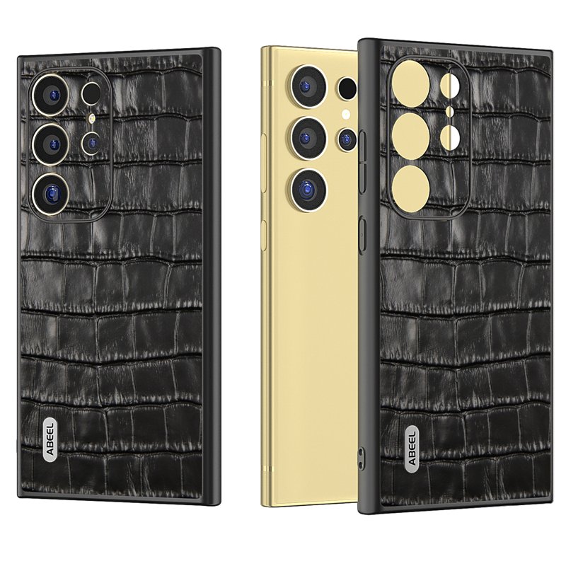ABEEL Samsung Galaxy S24 Ultra Skal Äkta Läder Krokodil Svart