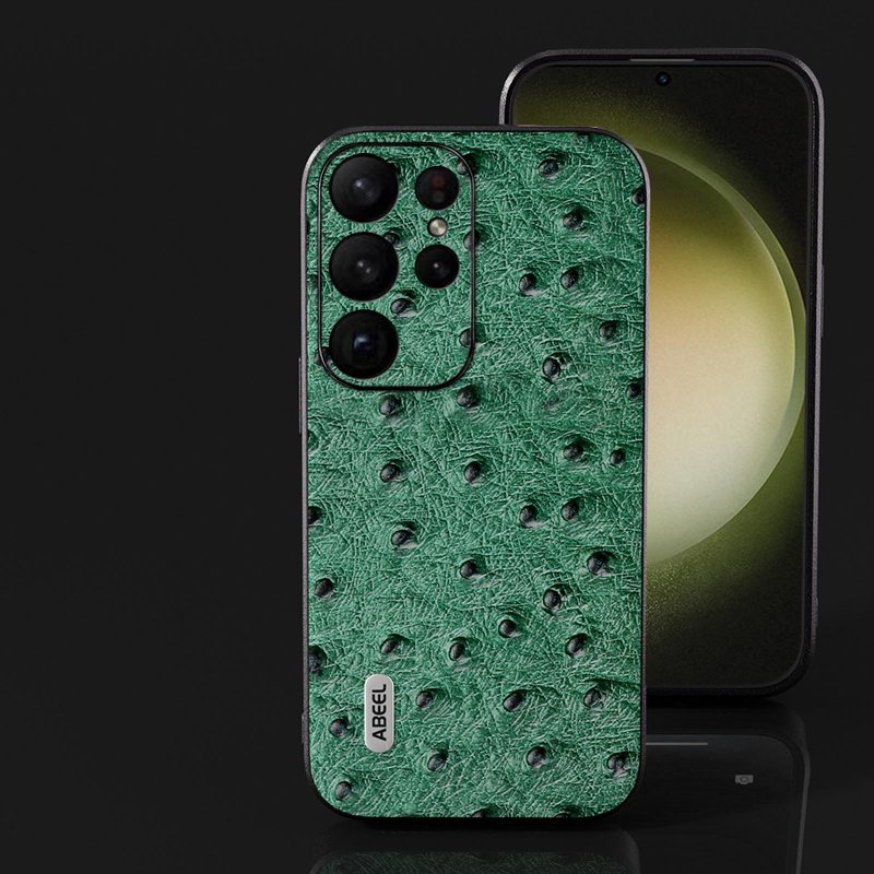 ABEEL Samsung Galaxy S24 Ultra Skal Äkta Läder Strutsgrön