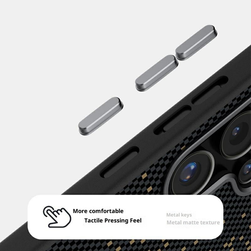 - Premium metallknappar och upphöjd skydd - Ger en bekväm och responsiv tryckupplevelse. Upphöjda kanter skyddar skärmen och kameran mot repor.