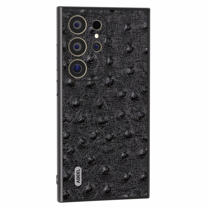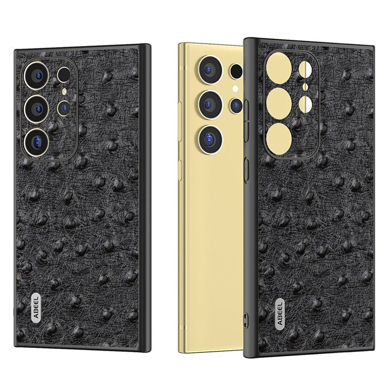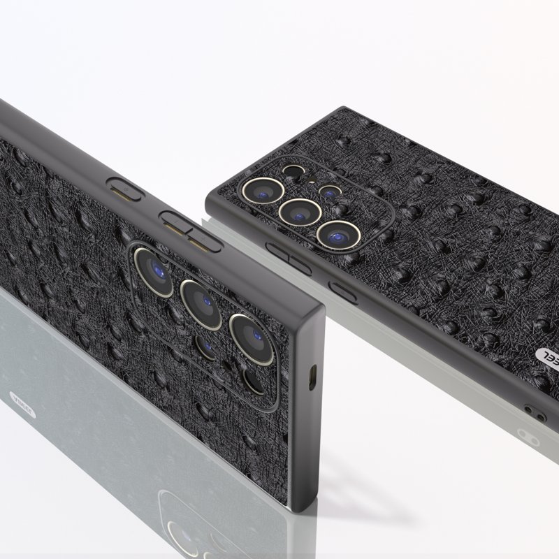 Denna telefonfodral är tillverkat av äkta nötköttsläder och har en beläggning av PC+TPU. Det är både hållbart och stiligt. Med en yta som imiterar struts ger det en elegant känsla. Fodralet skyddar din telefon mot slitage och repor, samtidigt som det ger enkel åtkomst till alla funktioner.