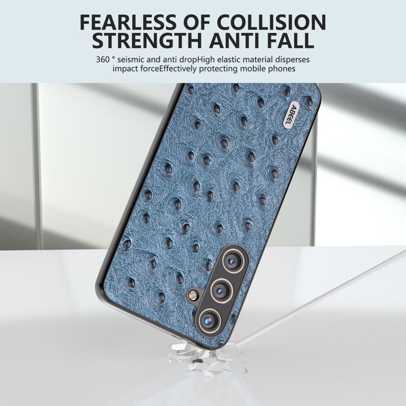Denna telefonfodral är tillverkat av äkta nötköttsläder och har en yta av PC+TPU. Det är både hållbart och stiligt. Med sin strutsstruktur ger det en elegant känsla. Fodralet skyddar din telefon mot skador och slitage, samtidigt som det ger enkel åtkomst till alla funktioner.