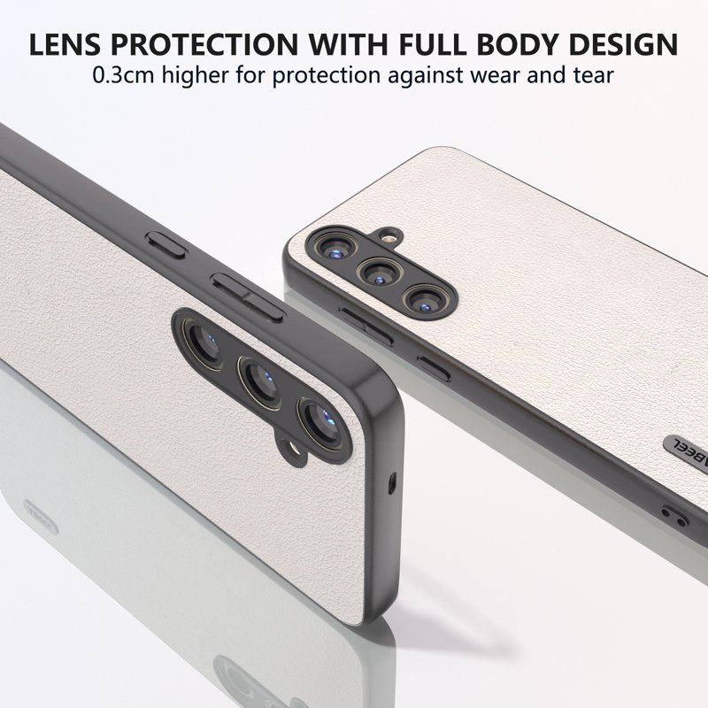 Denna telefonfodral är tillverkat av äkta nötläder, PC och TPU. Det är både hållbart och stiligt. Med sin fina textur ger det ett modernt utseende. Fodralet skyddar din telefon mot repor och slitage, vilket gör det till ett utmärkt val för daglig användning.