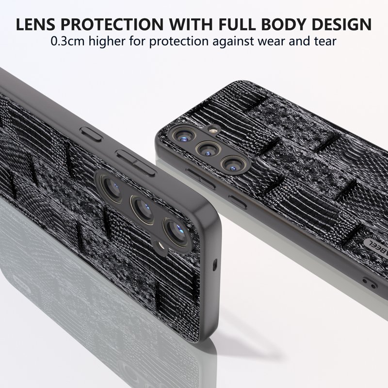 Denna mobilskal är tillverkat av äkta nötköttsläder, PC och TPU. Det erbjuder både stil och hållbarhet. Med sin unika mahjong-textur ger det ett modernt utseende. Skalet skyddar din telefon mot repor och slitage, vilket gör det till det perfekta valet för daglig användning.