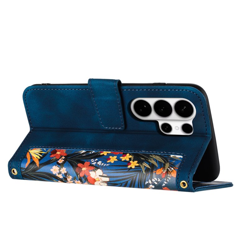 Skydda din Samsung Galaxy S26 Ultra med detta eleganta PU Leather Floral Phone Cover. Den mörkblå designen kombinerar stil och funktionalitet. Med praktiska kortfack och robust skydd är detta fodral perfekt för den moderna användaren. Njut av både lyx och säkerhet i ett och samma fodral.