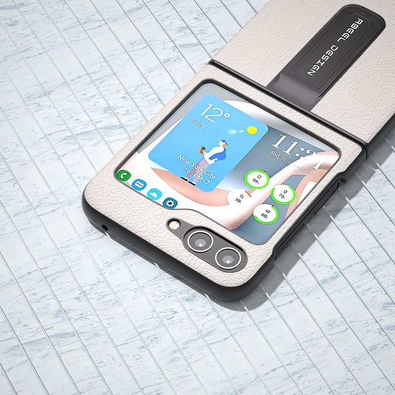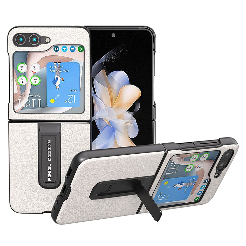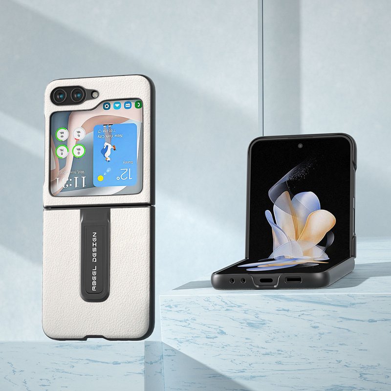 ABEEL Samsung Galaxy Z Flip5 Fodral Kickstand Äkta Läder Grå