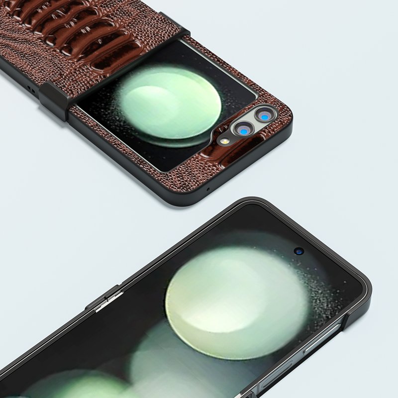 Denna exklusiva mobilskal är tillverkat av äkta nötläder och en hård PC-inre. Det erbjuder både stil och hållbarhet för långvarig användning. Med sin eleganta krokodilstruktur ger det en modern touch. Skalet skyddar din telefon mot slitage och repor, samtidigt som det är praktiskt och funktionellt.